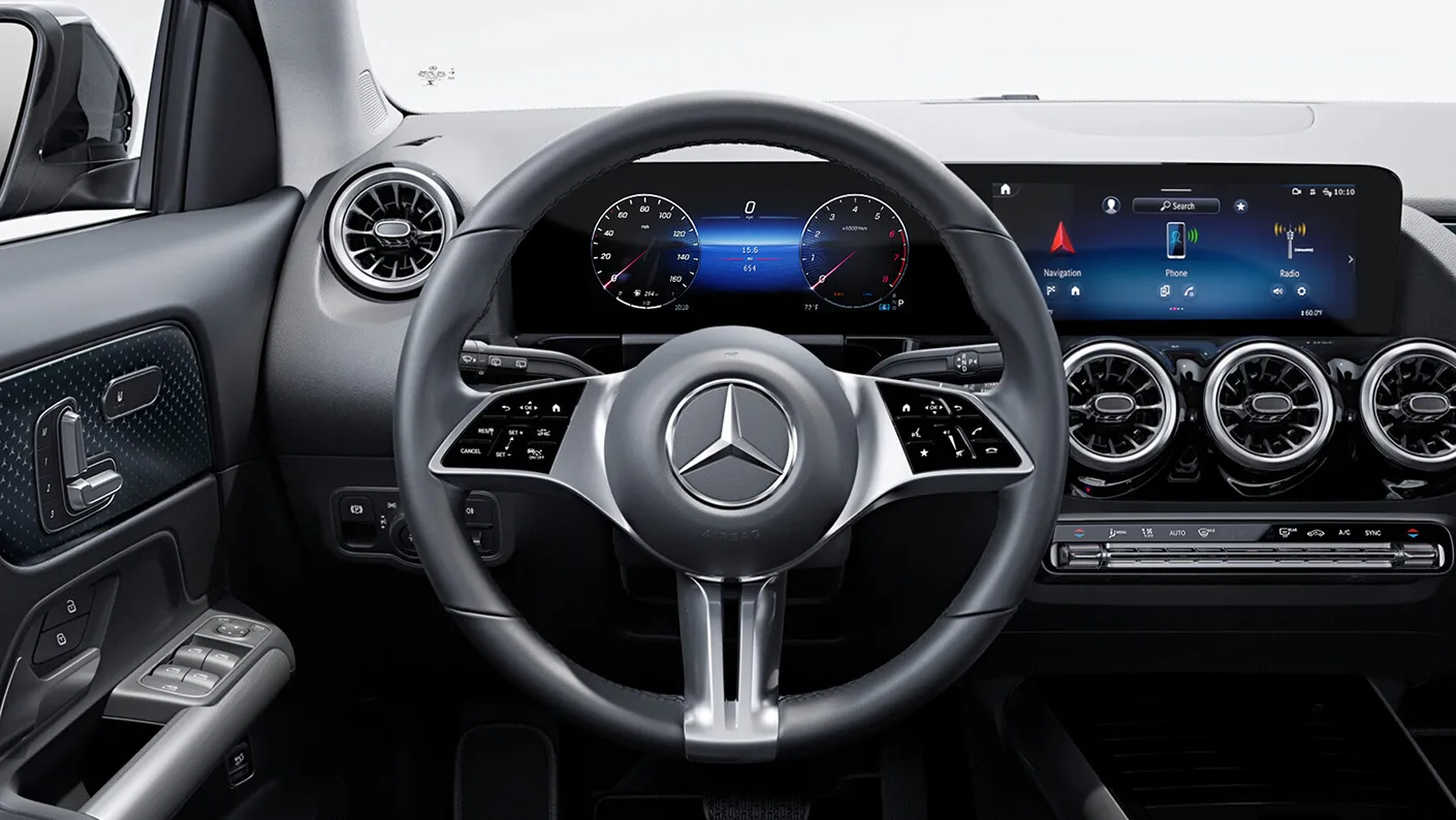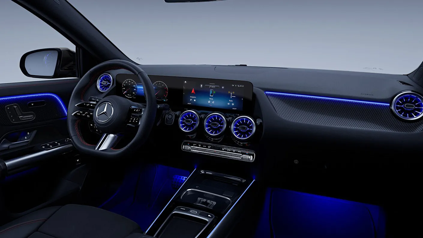 Slide into your GLA’s cabin and just say "Hey Mercedes," to witness the seamless activation of the voice control feature within the Mercedes-Benz User Experience (MBUX)! This user-friendly technology empowers you to effortlessly manage various aspects of your infotainment system, whether it's adjusting the cabin climate, making hands-free phone calls, or plotting routes to your preferred destinations. Engage with ease using the two 10.25-inch media displays, offering seamless integration with standard Apple CarPlay™ and Android Auto, along with optional MB Navigation. Alternatively, stay in control without taking your hands off the wheel by utilizing the convenient console touchpad and Touch Control Buttons on the steering wheel to access your infotainment system.