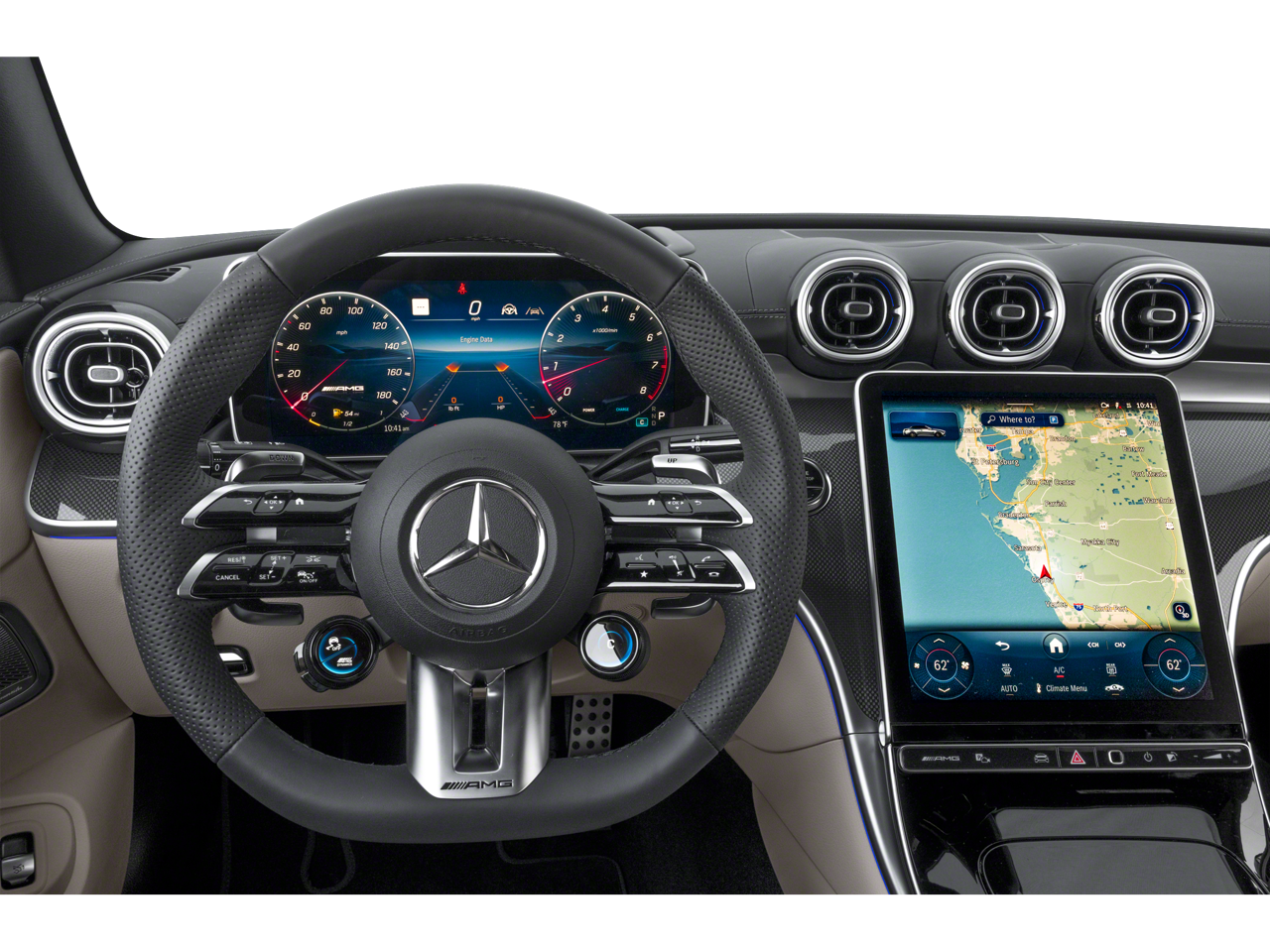 With some Available Options Like AMG® Night Package II, AMG® Night Package Plus (Badging on Wings and Trunk Lid in Black, Darkened AMG® Specific Radiator Grille, and High-Gloss Black Elements), Pinnacle Trim (DIGITAL LIGHT with Projections, Head-Up Display, and MBUX Augmented Reality For Navigation), 11.9 Center Touchscreen Display, 15 Speakers, 3 USB-C Ports, 4-Wheel Disc Brakes, ABS brakes, Adaptive suspension, Air Conditioning, Alloy wheels, AM/FM Radio, AM/FM radio: SiriusXM w/360L, AMG® Real Performance Sound, Apple CarPlay®/Android Auto®, Auto High-beam Headlights, Auto tilt-away steering wheel, Auto-dimming door mirrors, Auto-dimming Rear-View mirror, Automatic temperature control, Black Fine Structure Center Console, Black Rubber All-Weather Floormats (pack of 4), Brake assist, Bumpers: body-color, Child-Seat-Sensing Airbag, Compass, Convertible roof lining, Convertible roof wind blocker, Delay-off headlights, Driver door bin, Driver vanity mirror, Dual front impact airbags, Dual front side impact airbags, Electronic Stability Control, Emergency communication system: Mercedes-Benz Emergency Call Service, Exterior Parking Camera Rear, First Aid Kit, Four wheel independent suspension, Front anti-roll bar, Front Bucket Seats, Front Center Armrest, Front dual zone A/C, Front reading lights, Fully automatic headlights, Garage door transmitter: HomeLink, Glass rear window, HD Radio, Head restraints memory, Heated door mirrors, Heated Front Seats, Heated front seats, Heated Steering Wheel, Illuminated entry, Integrated roll-over protection, Knee airbag, Leather steering wheel, Low tire pressure warning, MB Navigation, MB-Tex/Microfiber Upholstery with Red Stitching, Memory seat, Multicontour Front Seats with Massage, Navigation system: MBUX, Occupant sensing airbag, Outside temperature display, Overhead airbag, Overhead console, Panic alarm, Passenger door bin, Passenger vanity mirror, Power adjustable front head restraints, Power convertible roof, Power door mirrors, Power driver seat, Power passenger seat, Power steering, Power windows, Radio data system, Rain sensing wipers, Rear anti-roll bar, Rear fog lights, Rear Side Airbags, Rear window defroster, Remote keyless entry, Security system, SiriusXM Satellite Radio, Speed control, Speed-sensing steering, Split folding rear seat, Spoiler, Sport steering wheel, Steering wheel memory, Steering wheel mounted audio controls, Tachometer, Telescoping steering wheel, Tilt steering wheel, Traction control, Trip computer, Turn signal indicator mirrors, Variably intermittent wipers, Ventilated Front Seats, Wheels: : 20 AMG® Grey Cross-Spoke Forged, Wheels: 19 AMG® Multi-Spoke with Black Accents, Wireless Android Auto®, and Wireless Apple CarPlay® Vehicle may not have all options as described due to automated process.
