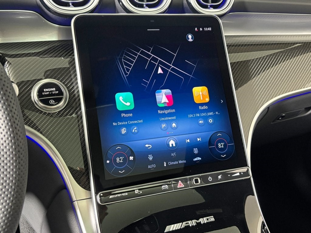 With some Available Options Like AMG® Night Package Components, AMG® Night Package Plus (Black Model Badging, Black Roof Rails, and Darkened AMG® Grille), MBUX Entertainment Package Plus, Pinnacle Trim (Augmented Reality for Navigation, Burmester® 3D Surround Sound, DIGITAL LIGHT w/Projections, Enhanced Active Ambient Light, Head-Up Display, Heat & Noise Insulating Glass, MBUX Navigation, Surround View System, and Transparent Hood), 11.9 Center Touchscreen Display, 4-Wheel Disc Brakes, 8 Speakers, ABS brakes, Adaptive suspension, Air Conditioning, Alloy wheels, AM/FM radio: SiriusXM, AMG® Animated LED Logo Projector, AMG® Performance Steering Wheel in Nappa, Apple CarPlay®/Android Auto®, Auto High-beam Headlights, Auto tilt-away steering wheel, Auto-dimming door mirrors, Auto-dimming Rear-View mirror, Auto-leveling suspension, Automatic temperature control, Black Seatbelts, Brake assist, Bumpers: body-color, Child-Seat-Sensing Airbag, Compass, Delay-off headlights, Driver door bin, Driver vanity mirror, Dual front impact airbags, Dual front side impact airbags, Electronic Stability Control, Emergency communication system: eCall Emergency System, Exterior Parking Camera Rear, First Aid Kit, Four wheel independent suspension, Front anti-roll bar, Front Bucket Seats, Front Center Armrest, Front dual zone A/C, Front reading lights, Fully automatic headlights, Garage door transmitter: HomeLink, Genuine wood dashboard insert, Head restraints memory, Heated door mirrors, Heated front seats, Heated steering wheel, Illuminated entry, Knee airbag, Leather steering wheel, Low tire pressure warning, MB-Tex/Microfiber Upholstery, Memory seat, Occupant sensing airbag, Outside temperature display, Overhead airbag, Overhead console, Panic alarm, Passenger door bin, Passenger vanity mirror, Piano Black Lacquer Center Console, Power adjustable front head restraints, Power door mirrors, Power driver seat, Power Heated Front Bucket Seats, Power Liftgate, Power moonroof: Panoramic, Power passenger seat, Power steering, Power windows, Premium audio system: MBUX, Radio data system, Radio: 3rd Generation MBUX, Rain sensing wipers, Rear anti-roll bar, Rear fog lights, Rear reading lights, Rear seat center armrest, Rear window defroster, Rear window wiper, Remote keyless entry, Security system, SiriusXM Satellite Radio, Speed control, Speed-sensing steering, Split folding rear seat, Spoiler, Sport steering wheel, Steering wheel memory, Steering wheel mounted audio controls, Tachometer, Telescoping steering wheel, Tilt steering wheel, Traction control, Trip computer, Turn signal indicator mirrors, Variably intermittent wipers, Ventilated Front Seats, Wheels: 20 AMG® Twin 10-Spoke, Wheels: 21 AMG® Y-Spoke Matte Black, Wireless Android Auto®, and Wireless Apple CarPlay® Vehicle may not have all options as described due to automated process.