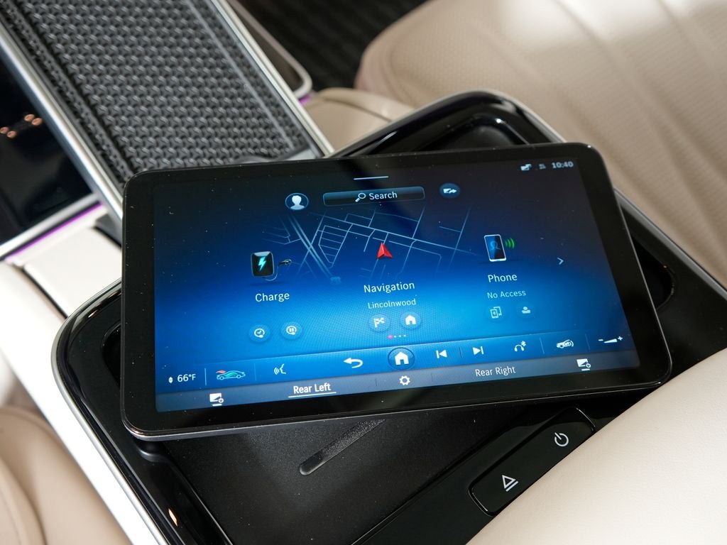 - Radio: Burmester 3D Surround Sound System -inc: sound personalization, 12.8" OLED touchscreen center display, MBUX w/navigation and 'Hey Mercedes' voice control, augmented video for navigation, front wireless charging, wireless smartphone integration (Apple CarPlay, Android Auto), 8 USB-C ports (4 front, 4 rear) and SiriusXM Radio w/Platinum trial plan